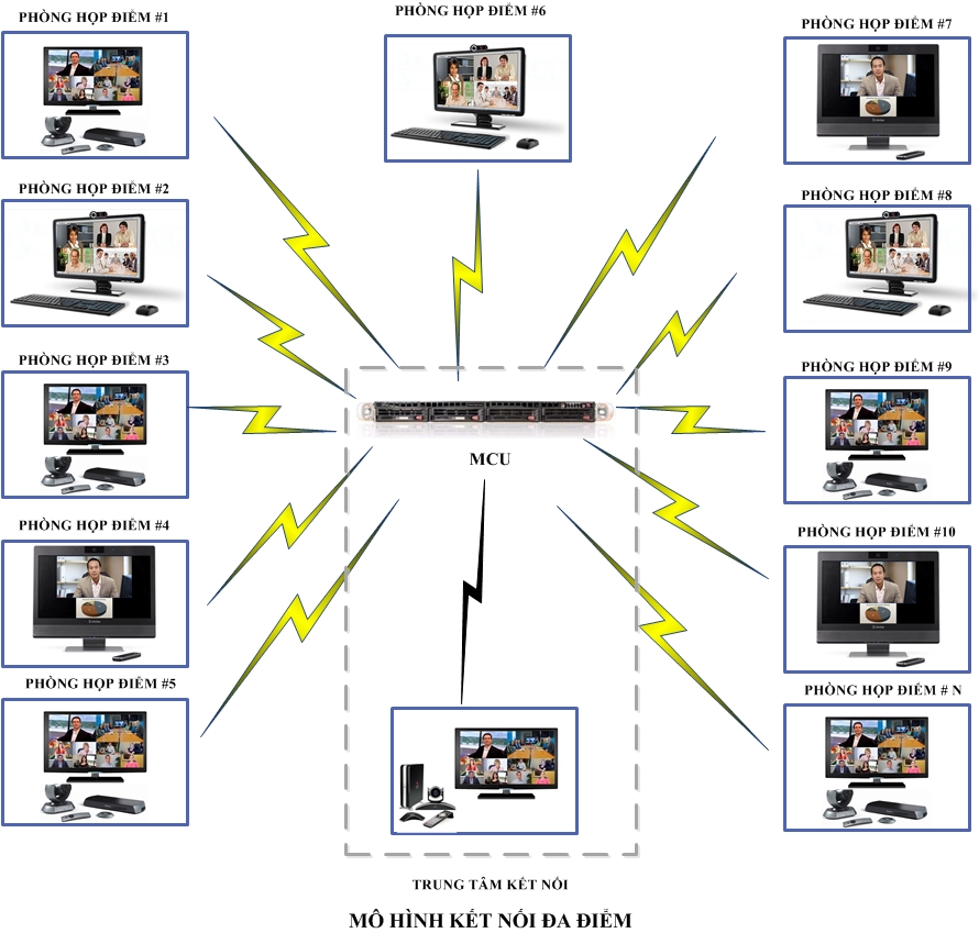 Mô hình đa điểm (Multipoint): Kết nối nhiều địa điểm thông qua MCU