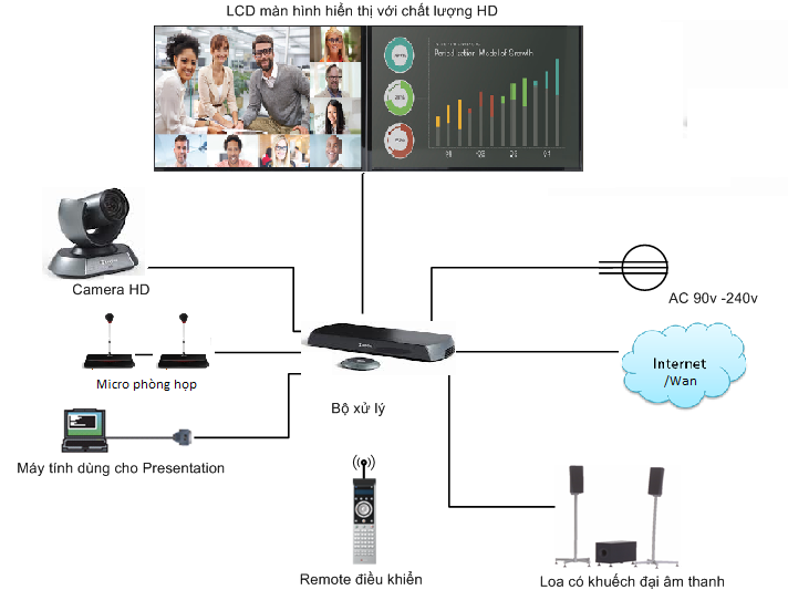 Đối với phòng họp doanh nghiệp, hệ thống bao gồm: